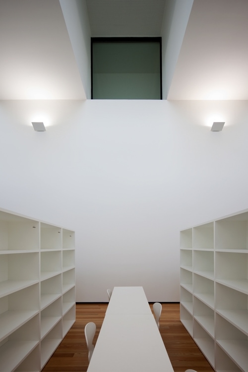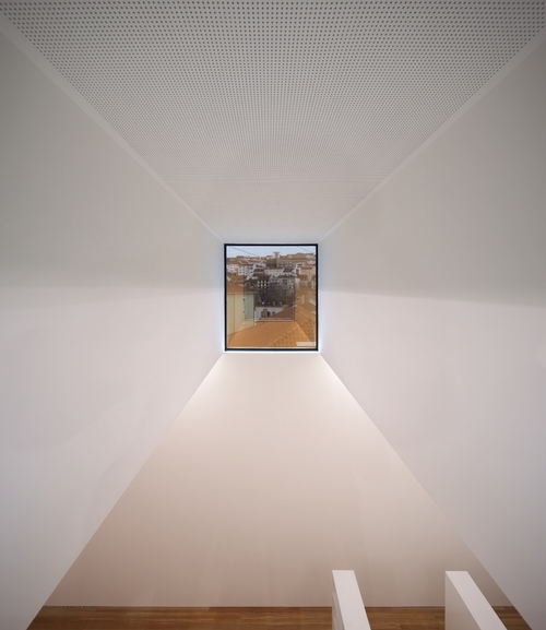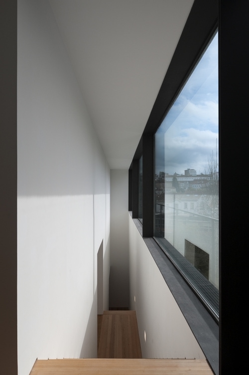 A partir da proporção da antiga “sala do carvão", o novo edifício/torre em betão expressa uma acentuada verticalidade num empilhamento de espaços de secção quadrada, de alturas e combinações variáveis, intercalados por caixas suspensas que permitem a alternância de funções e vistas.