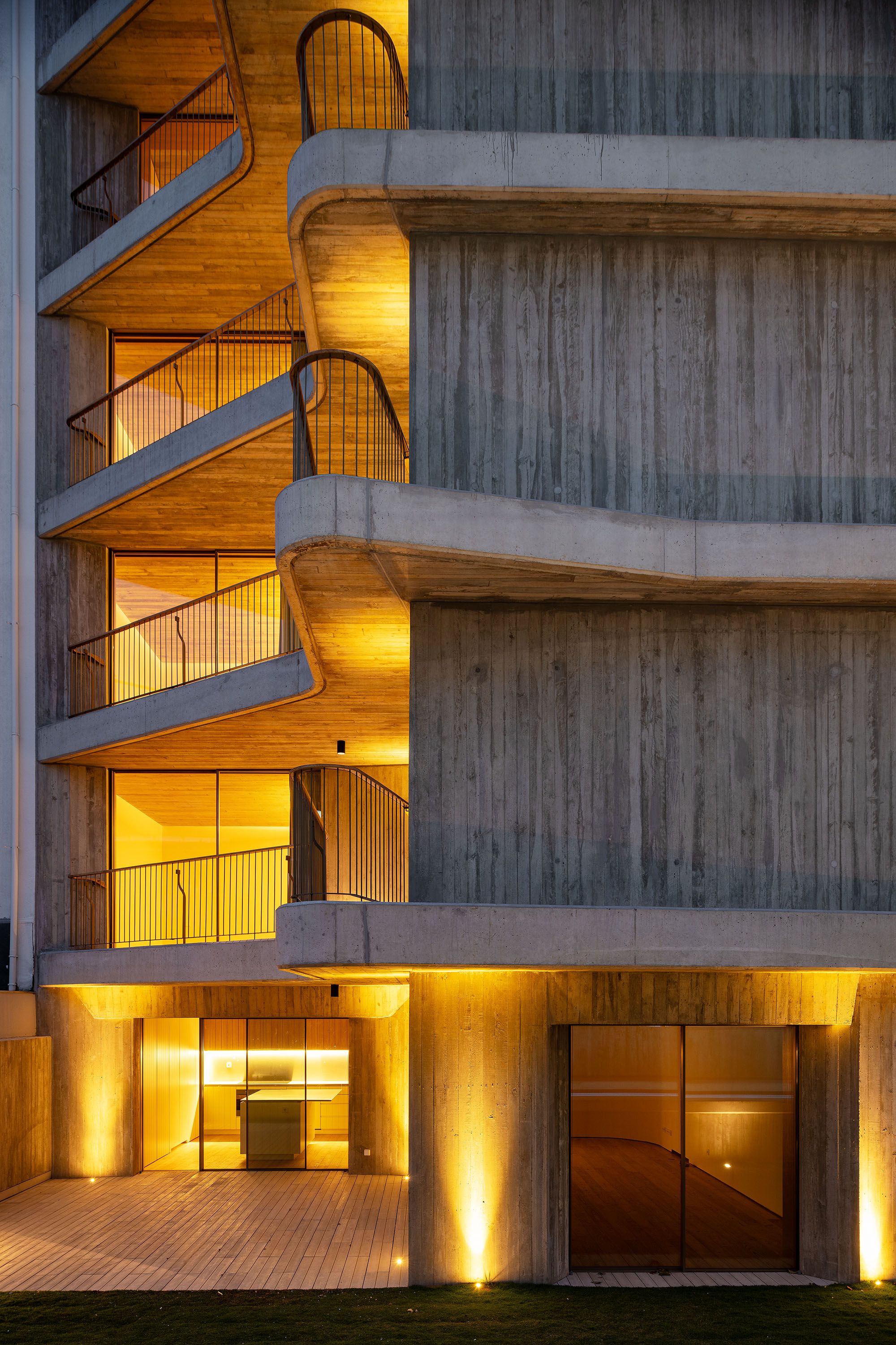 Cada apartamento é concebido de forma diferenciada na sua tipologia, como extensão da identidade, individualidade e privacidade de cada habitante. Este princípio de heterogeneidade tipológica expressa-se numa fachada dinâmica e orgânica, unificada pela sensualidade dos traçados curvos dos limites das varandas. O espaço interior prolonga-se sobre o exterior, numa atmosfera luminosa e aberta.